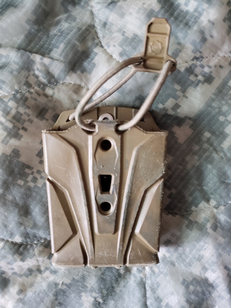 The SMR is rigid polymer magazine carrier. It is made to be as light weight as possible, while being robust. It utilizes the same GRT system as the ELOS, allowing for swapping them based on the mission. The SMR has little material on it, which allows for dirt and debris to come and go. I have only utilized the SMR on my belt and have not had an issue with debris. If you are using it on a plate carrier, I would recommend getting the Dust-E. This will keep most, if not all of the debris out. I know NCOs who will make their soldiers do things to get dirt and debris into their mags when they use pouches like this. Apparently asking a soldier “Why are you using that pouch?” is too hard. I’ve never experienced it, but I do get called high speed. The SMR is a minimalist mag carrier. There is no doubling them up. There is no adjusting the height. It carries a mag, and is not a platform to extra gear on. The SMR allows you to reindex mags with ease. It doesn’t have a bungee, so if that is absolutely necessary than you should consider the ELOS. The SMR can be found online, sold with the belt GRT for the price of your average MOLLE or kydex pouch. So instead of buying another admin or general purpose pouch that you don’t need, get the SMR/GRT combo and try it out. If you don’t like it, just give it to a buddy.